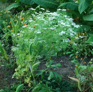 (broken-up) seeds directly in the garden bed in spring, as soon as the ground can be worked. Plant in furrows 2 to 3 feet apart, barely cover seeds, tamp well, make sure the planting stays moist, and allow to come up thickly. Germination can be a bit cranky, especially in over-warm soils. Sow starting in the early spring, in successions 3 weeks apart, in order to assure ongoing availability of the fresh herb. Harvest for leaf prior to flowering.