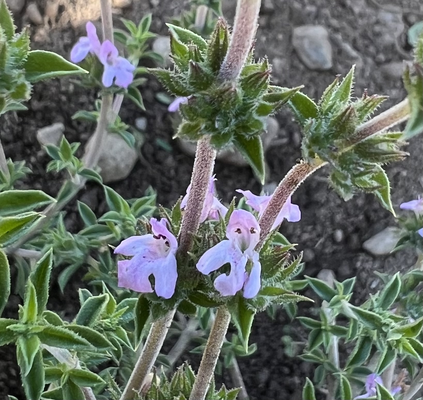 Evergreen perennial native to the Mediterranean basin and a dominant plant on the island of Crete.  Low-lying bushes with large, pink flowers, highly aromatic and spicy, used in the culinary arts in the same way as summer savory, winter savory, and thyme (which it somewhat resembles).  Traditional usage (TWM):  External–analgesic and circulation stimulant.  Plant prefers full sun, a dry exposure, and fast-draining soil.  A mild, brief scarification on fine grit sandpaper may serve to increase germination rate and speed of emergence.  Sow seed on surface of warm soil and press in.  Keep warm, evenly moist and in the light until germination, which occurs in 1 to 3 weeks.  Individuate seedlings to their own pots and grow on until large enough to transplant to the garden or landscape.  Space plants 2 feet apart.