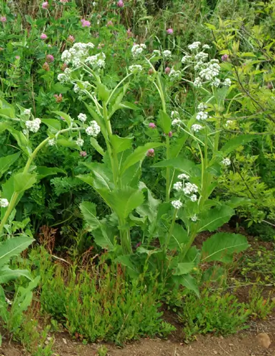 (Prairie Dock)  Herbaceous perennial prairie dweller native to the eastern US.  The creamy-white umbels are very long-lasting, on a stout and handsome plant to 3 feet tall.  Fine showplant for medicinal herb garden or prairie restoration site.  Traditional usage (American Indian, TWM): burns, intermittent fevers.  Plant prefers full sun and rich soil of garden or grassland.  Sow seed in fall or early spring.  This tap rooted plant will benefit from direct seeding, or if using pots, choose deep pots and transplant before the seedlings get rootbound.  Seed benefits from a period of cold, moist conditioning prior to germinating in warm conditions.  This may be provided by planting the seed outdoors, or by giving 30 to 90 days cold, moist refrigeration before planting. Space plants 2 feet apart.
